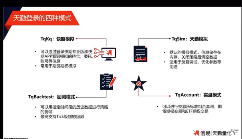 注意:如果不指定登录模式,默认登录的是TqSim(天勤模拟),天勤模拟没什么用,一般大家用的是快期模拟。